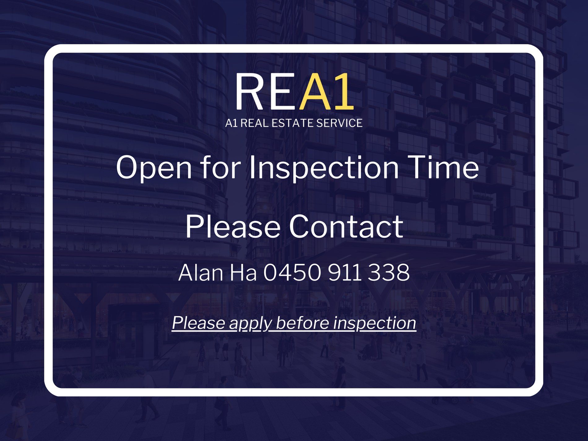 Please Contact Alan Ha on 0450911338 for further information.